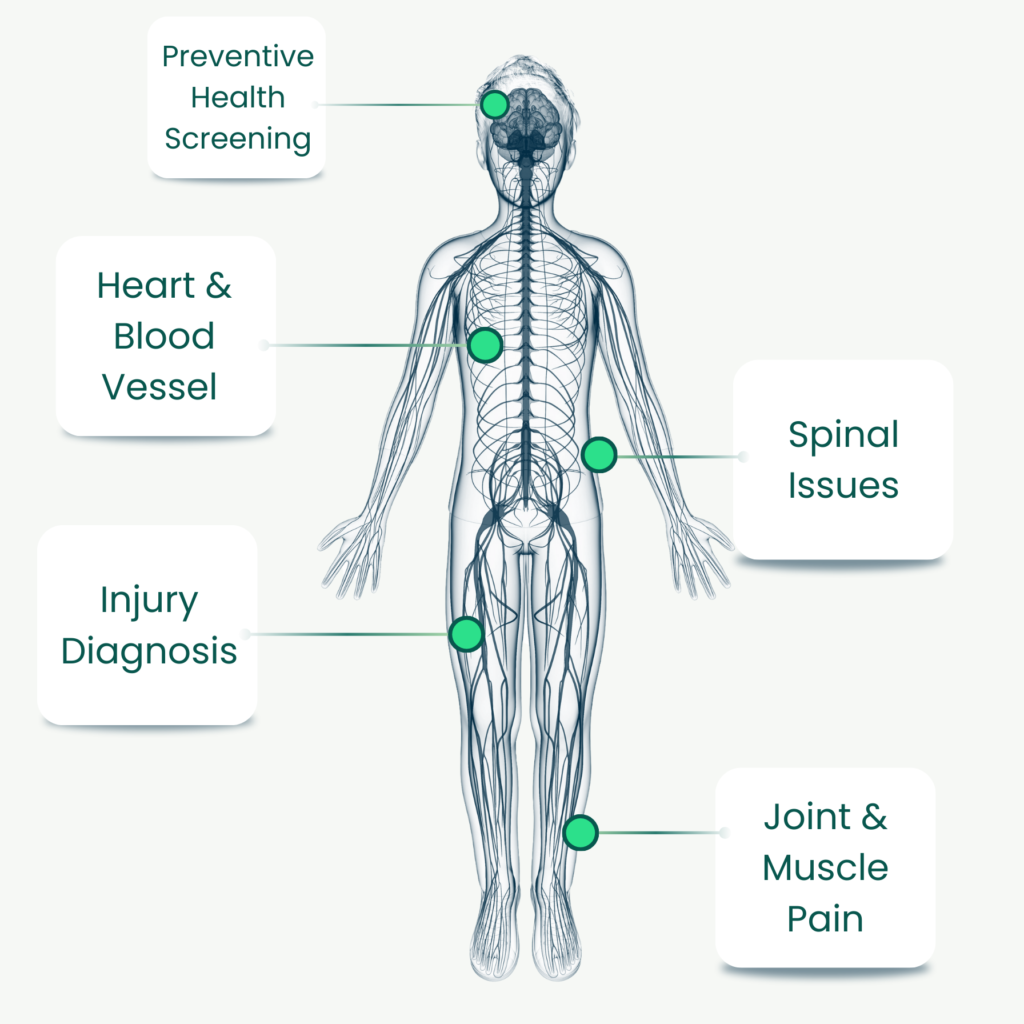 Patients considering the Full Body Scan may have general health concerns and look into an MRI for preventive care, early detection, or early diagnosis.